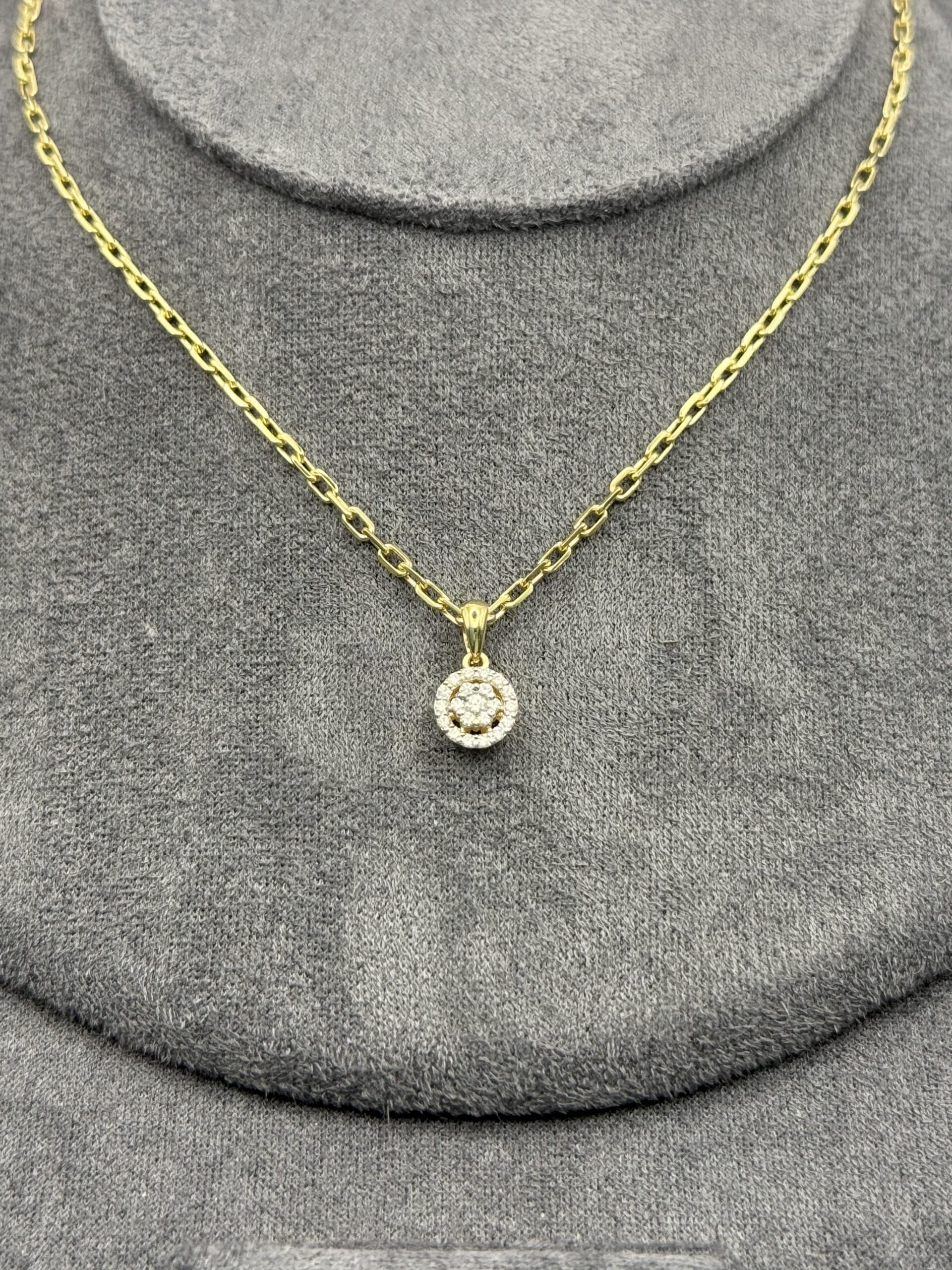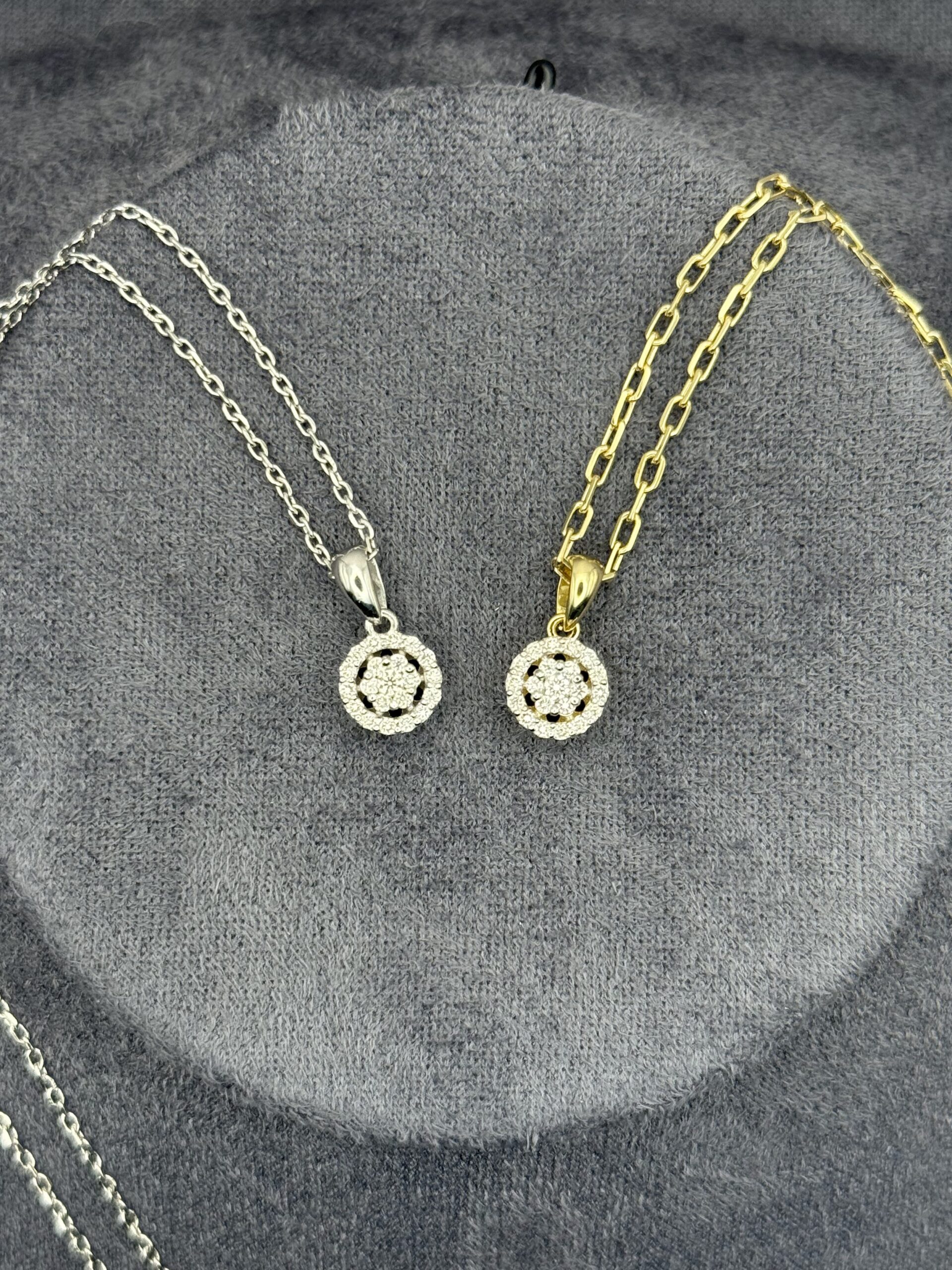 Կախազարդի կենտրոնում գտնվող ադամանդապատ ծաղիկը շրջապատված է մանր քարերի նուրբ շրջանակով, որը զարդին հաղորդում է էլ ավելի պայծառ ու շողշողուն փայլ։ Դասական և նրբագեղ այս կախազարդը հիանալիորեն համադրվում է թե՛ հատուկ առիթների և թե՛ ամենօրյա ոճի հետ՝ դառնալով Ձեր կերպարի կատարյալ շեշտադրումը։