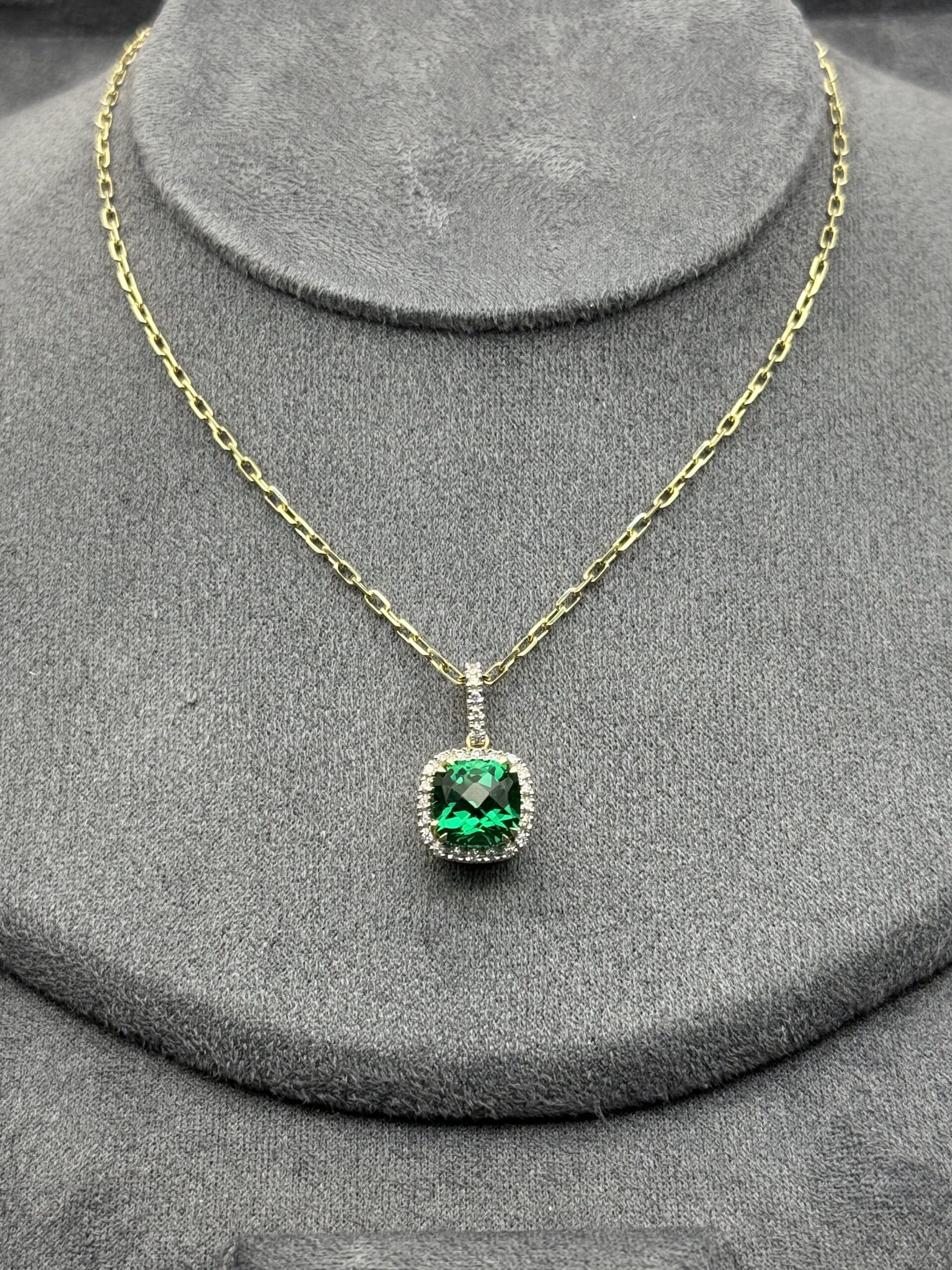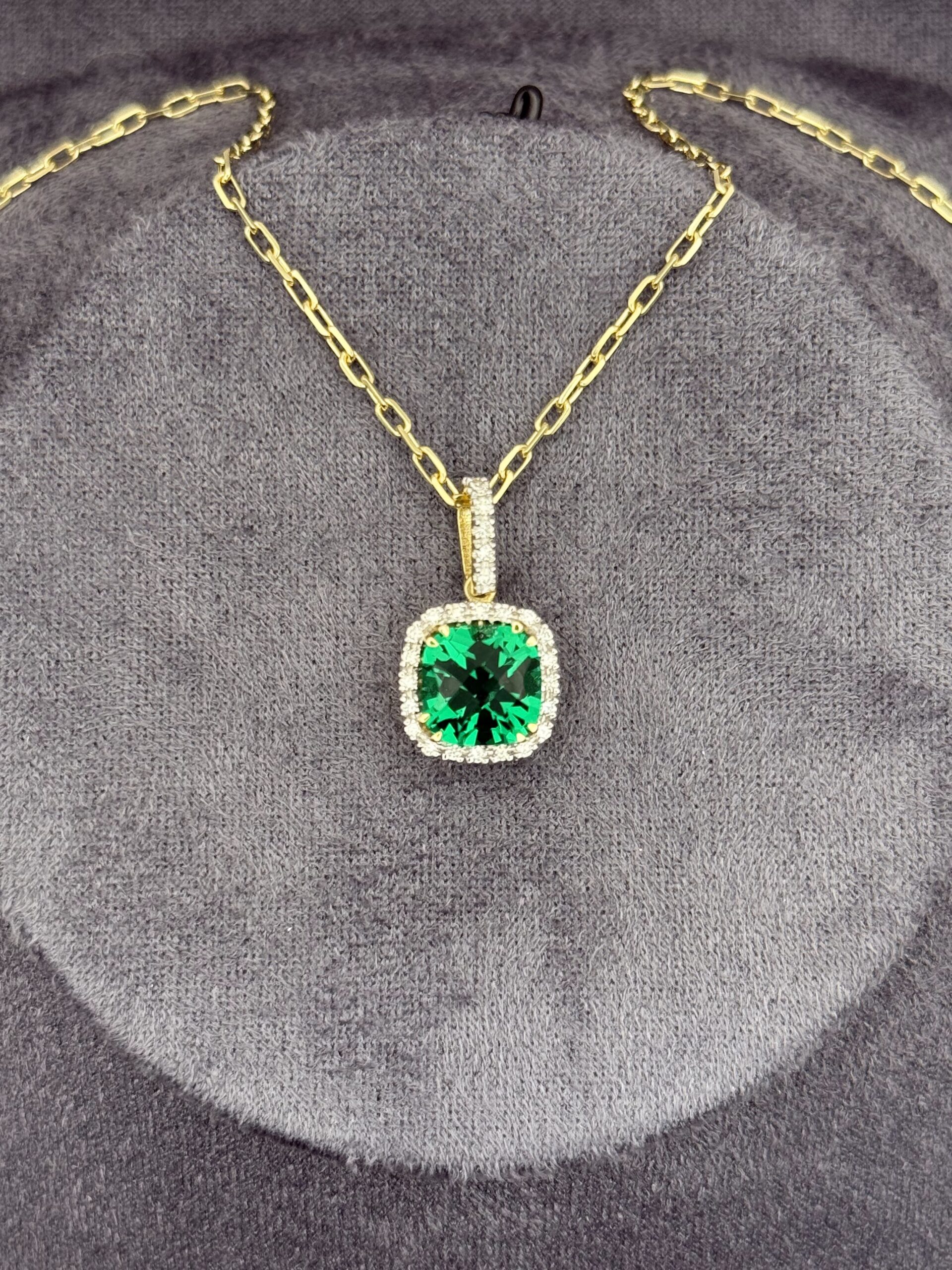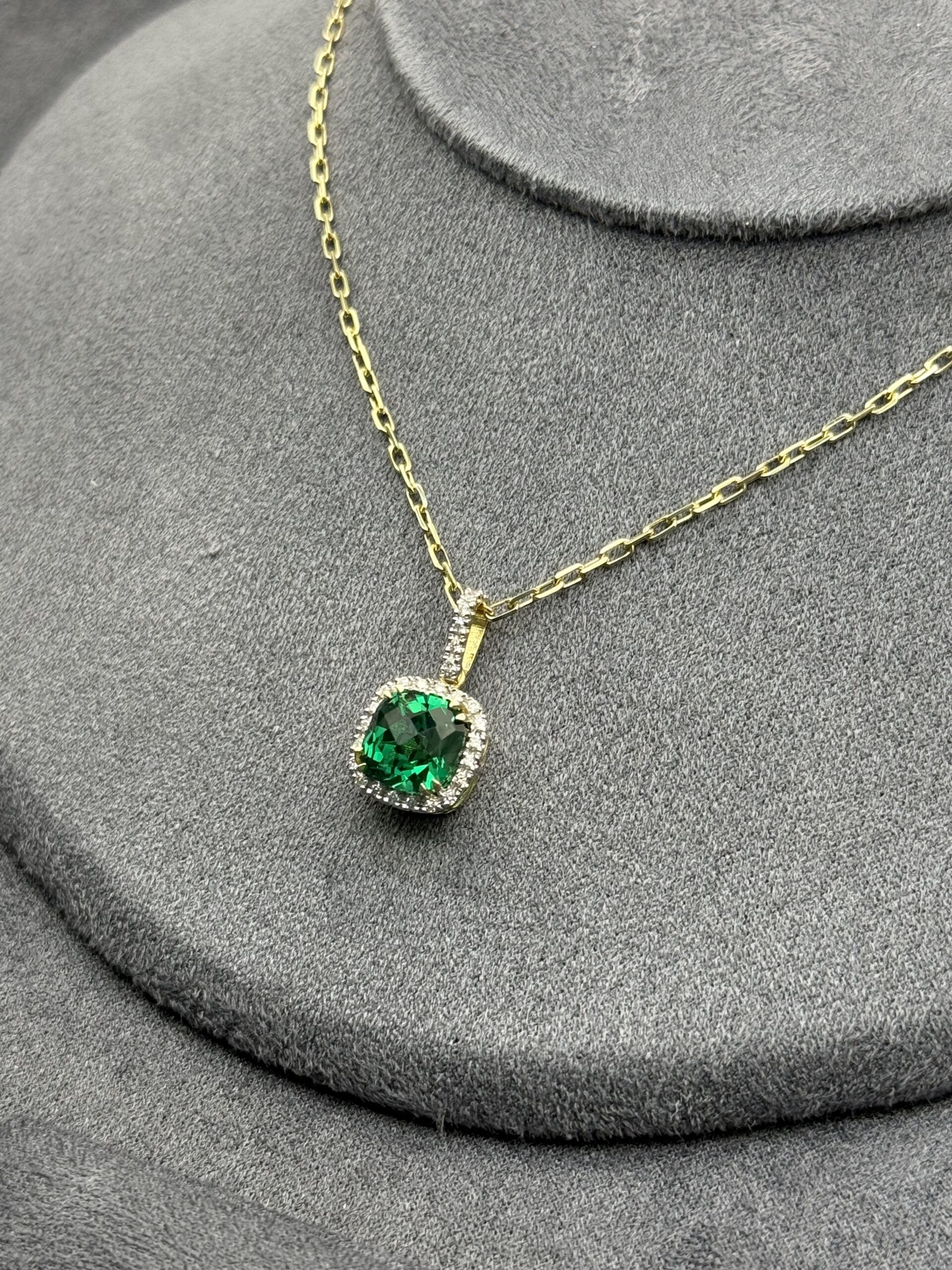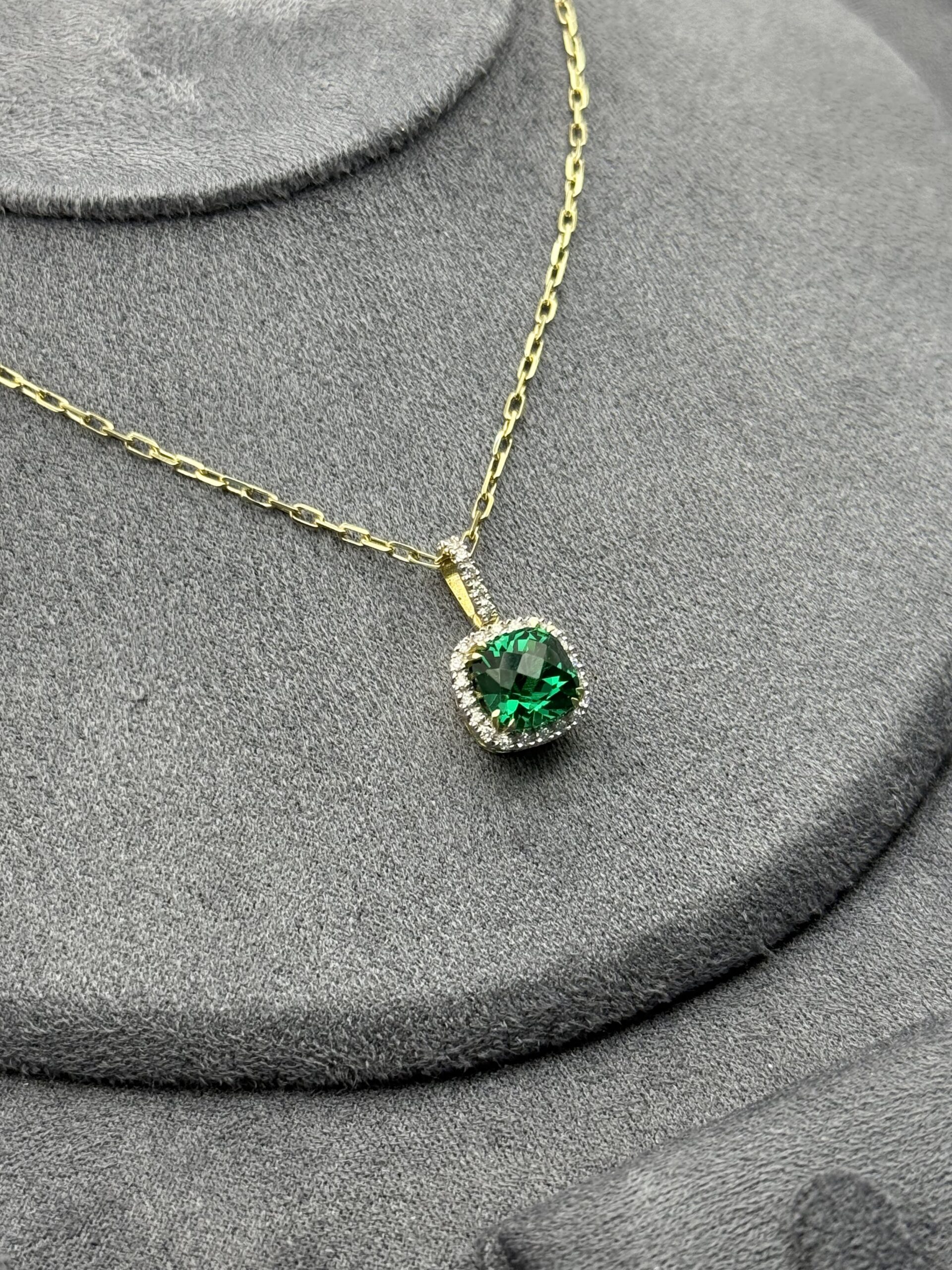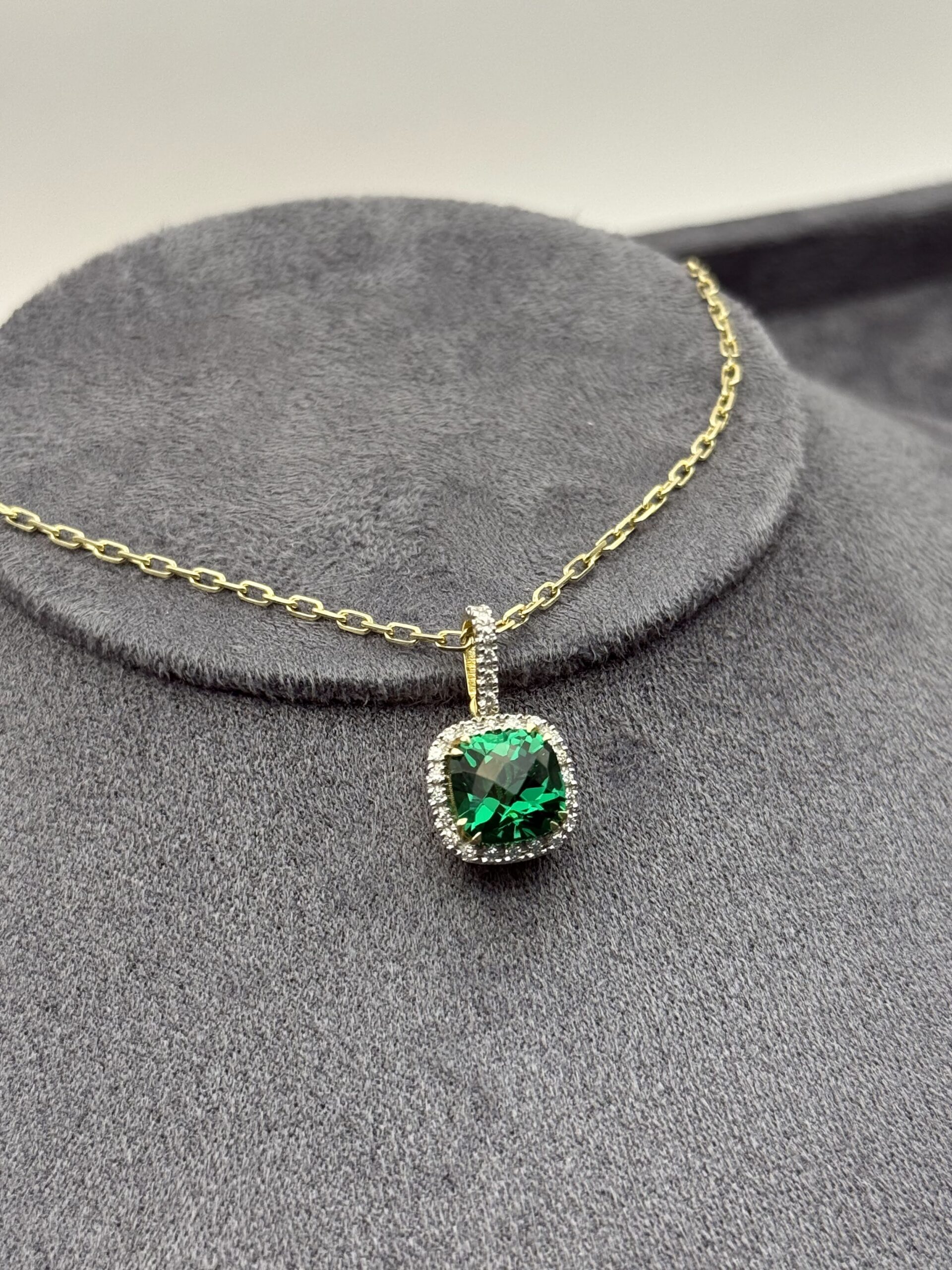 Ընդգծեք Ձեր ոճը այս հիասքանչ կախազարդով, որը համատեղում է հարուստ կանաչ գույնը ոսկու փայլի և ադամանդների շողշողուն շրջանակի հետ: Սա իսկական գոհար է ցանկացած ոսկերչական հավաքածուի համար: