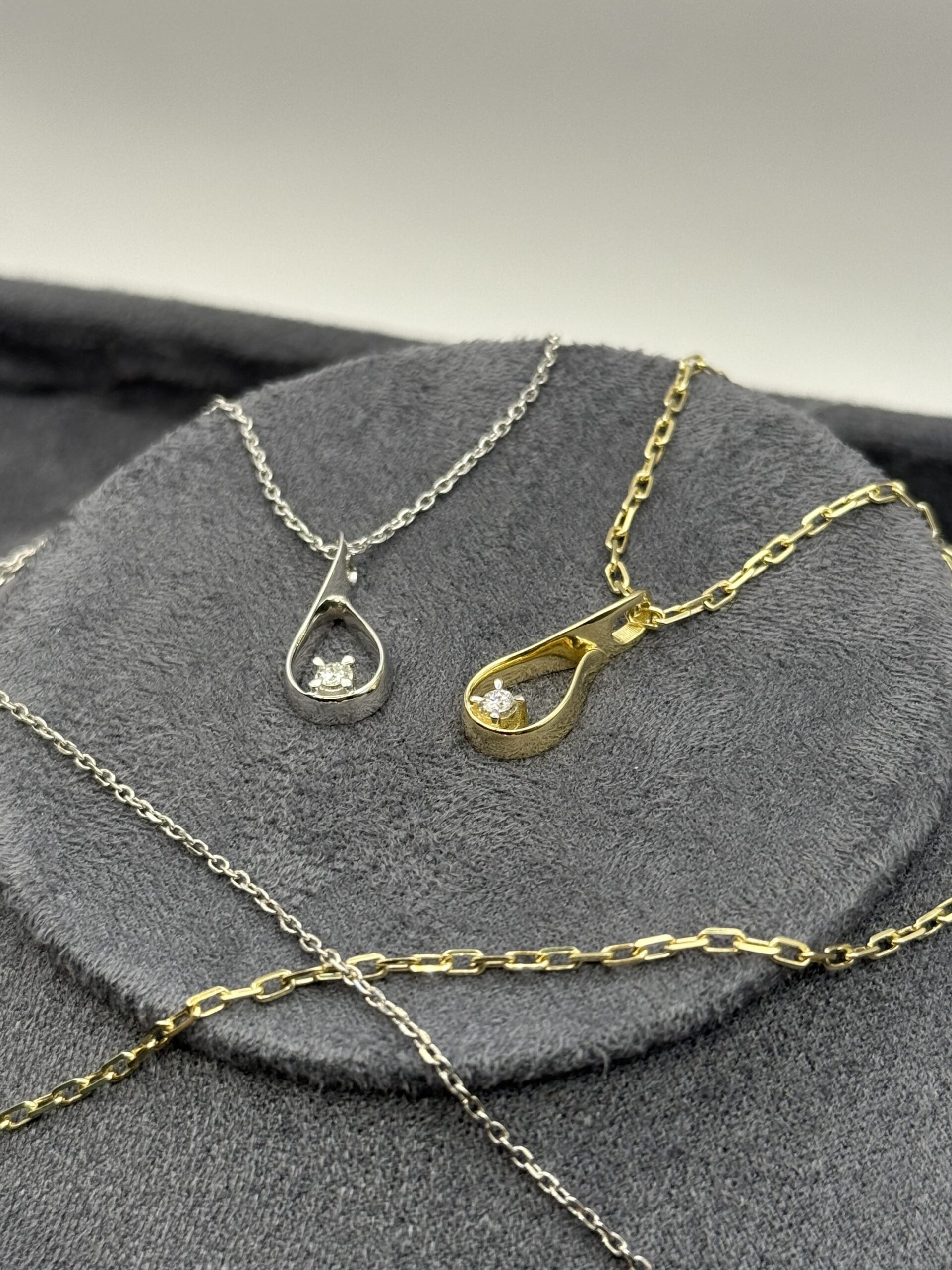Այս նրբագեղ կախազարդը պատրաստված է 585 հարգի ոսկուց և կրում է բնական ադամանդ։ Այն ունիվերսալ զարդ է, որը կարող եք կրել ամեն օր կամ հատուկ առիթներով։